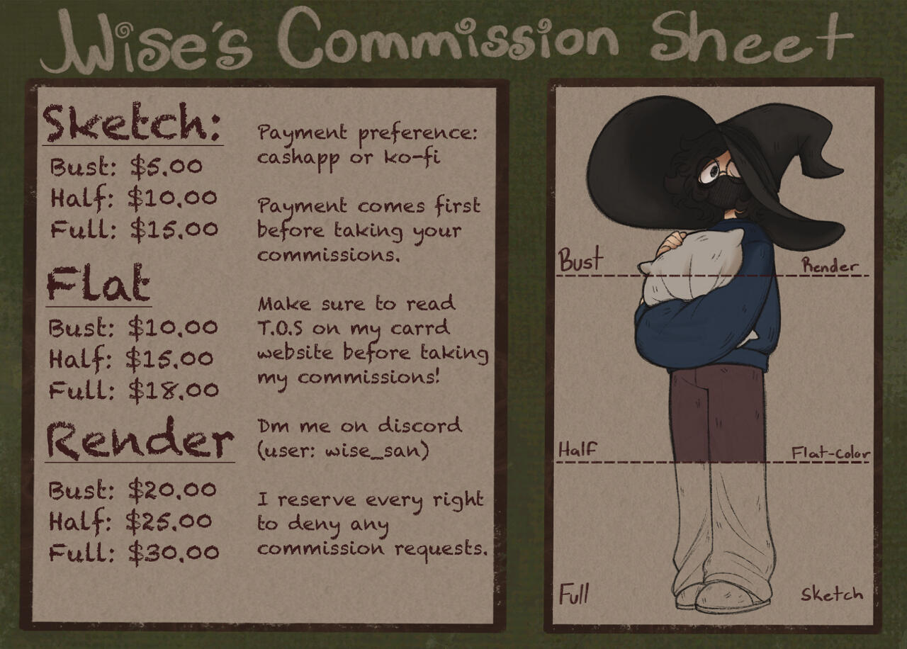 Please be patient while I take your commission. It will take me a while to finish them depending on my schedule.